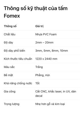 Tấm Fomex là vật liệu nhẹ – bền – dễ gia công – chi phí hợp lý, đáp ứng tốt nhu cầu của ngành quảng cáo và trang trí. Nhờ khả năng in ấn sắc nét và thi công linh hoạt, Fomex đang trở thành lựa chọn phổ biến cho nhiều doanh nghiệp và đơn vị thiết kế.
